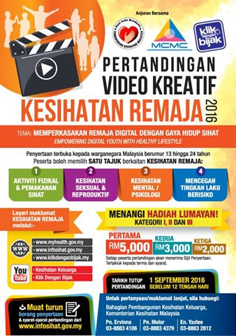 Pihak MCMC dengan kerjasama Kementerian Kesihatan Malaysia (KKM) telah menganjurkan ‘Pertandingan Video Kreatif Kesihatan Remaja 2016’ yang bertemakan ‘Memperkasakan Remaja Digital Dengan Gaya Hidup Sihat’. Program ini dijalankan dalam menyokong Pelan Tindakan Kesihatan Remaja Kebangsaan 2015-2020. Sesiapa yang berminat untuk […]
