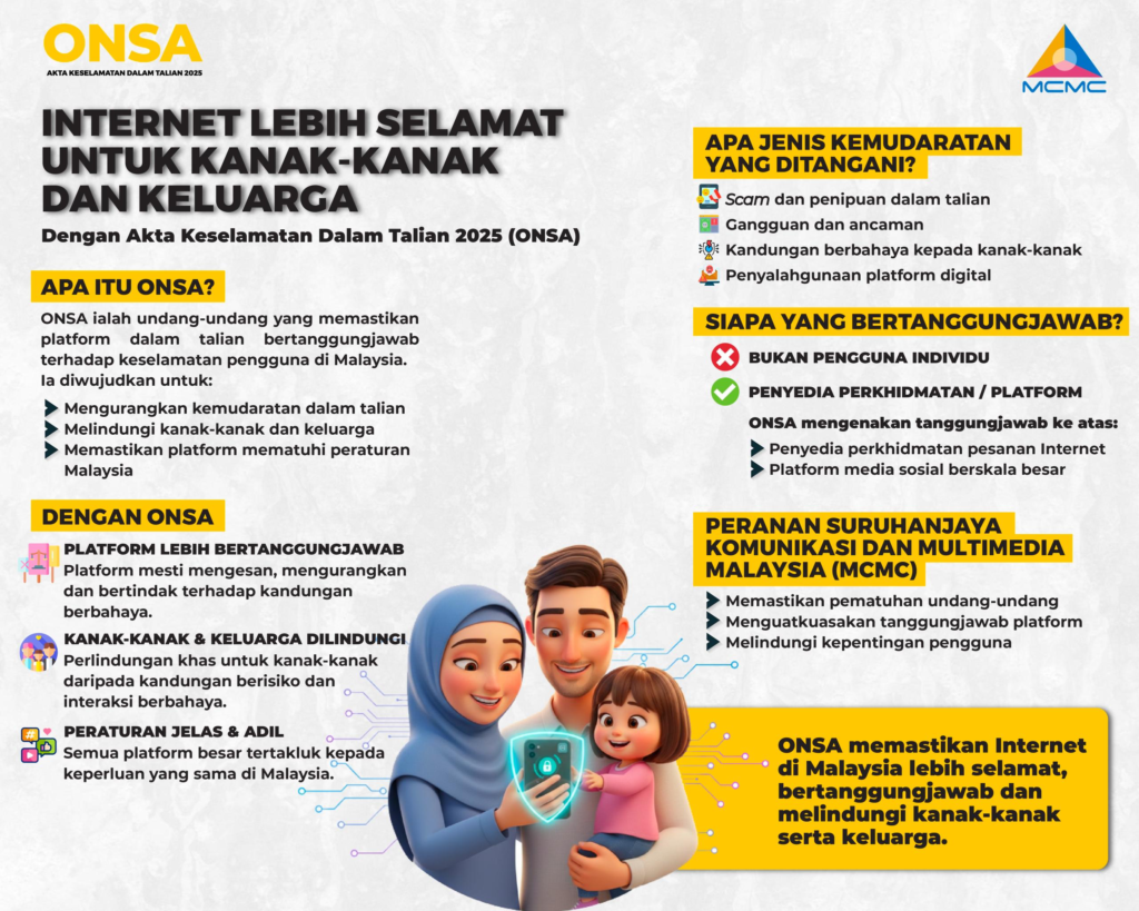Akta Keselamatan Dalam Talian 2025 (ONSA) memperkukuh tanggungjawab platform digital demi keselamatan pengguna.